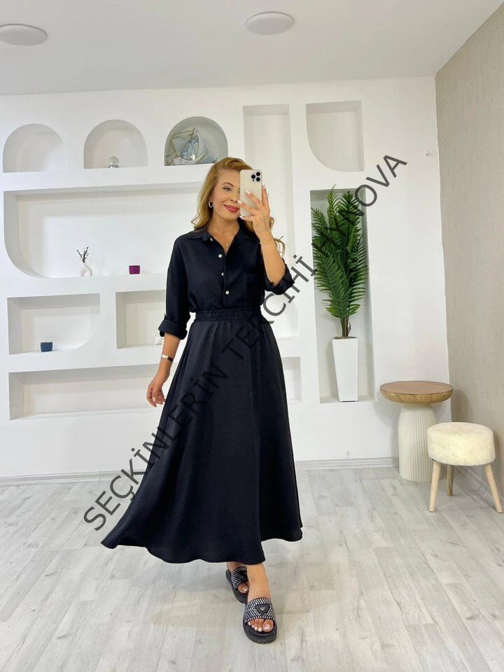 Kadın Keten Kumaş Gömlek Ve Etek Ikili Takim