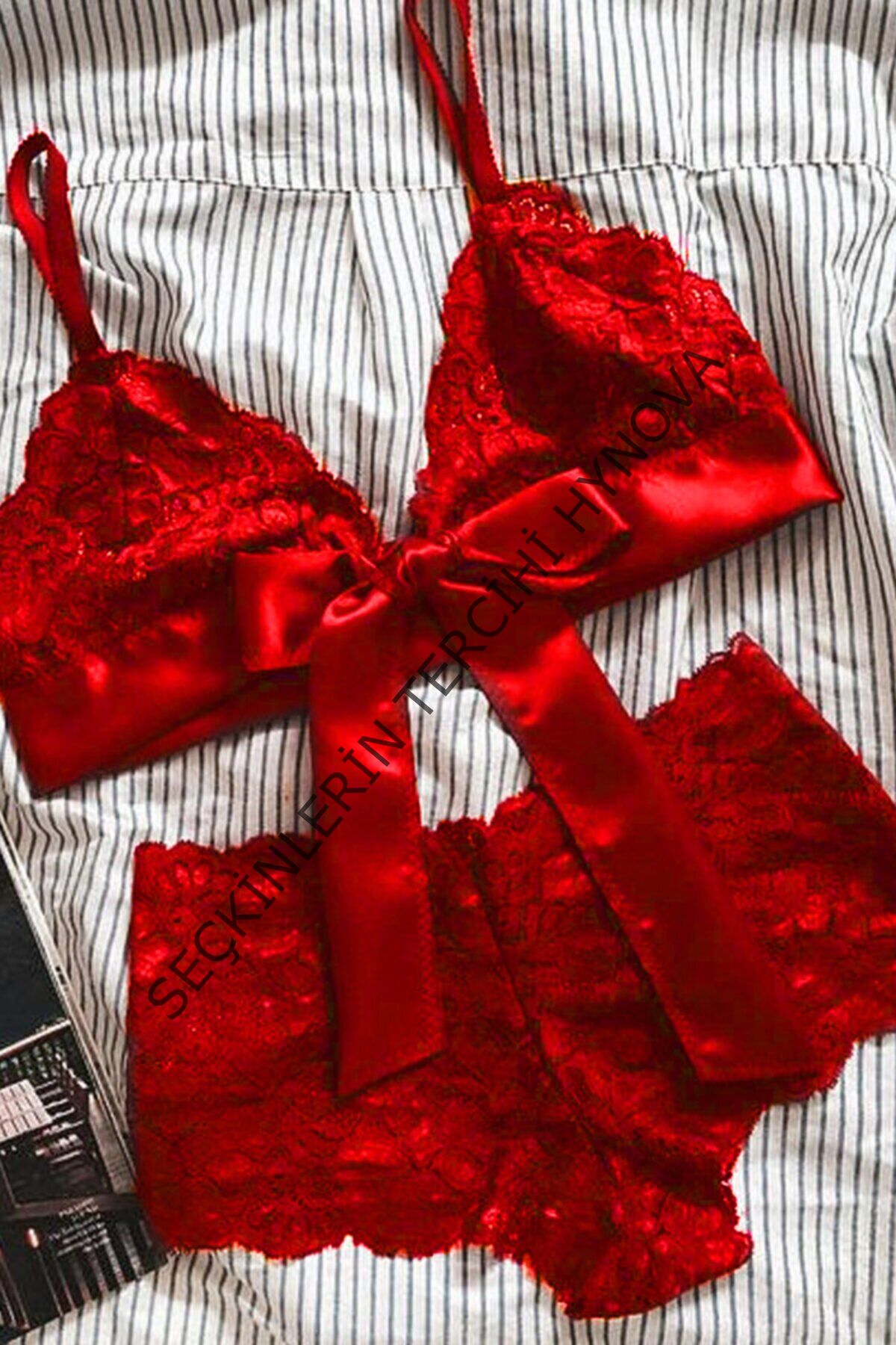 Kadın Kırmızı Dantelli & Kurdelalı Sütyen Külot Takımı – Modern, Konforlu ve Günlük Kombinlere Uygun