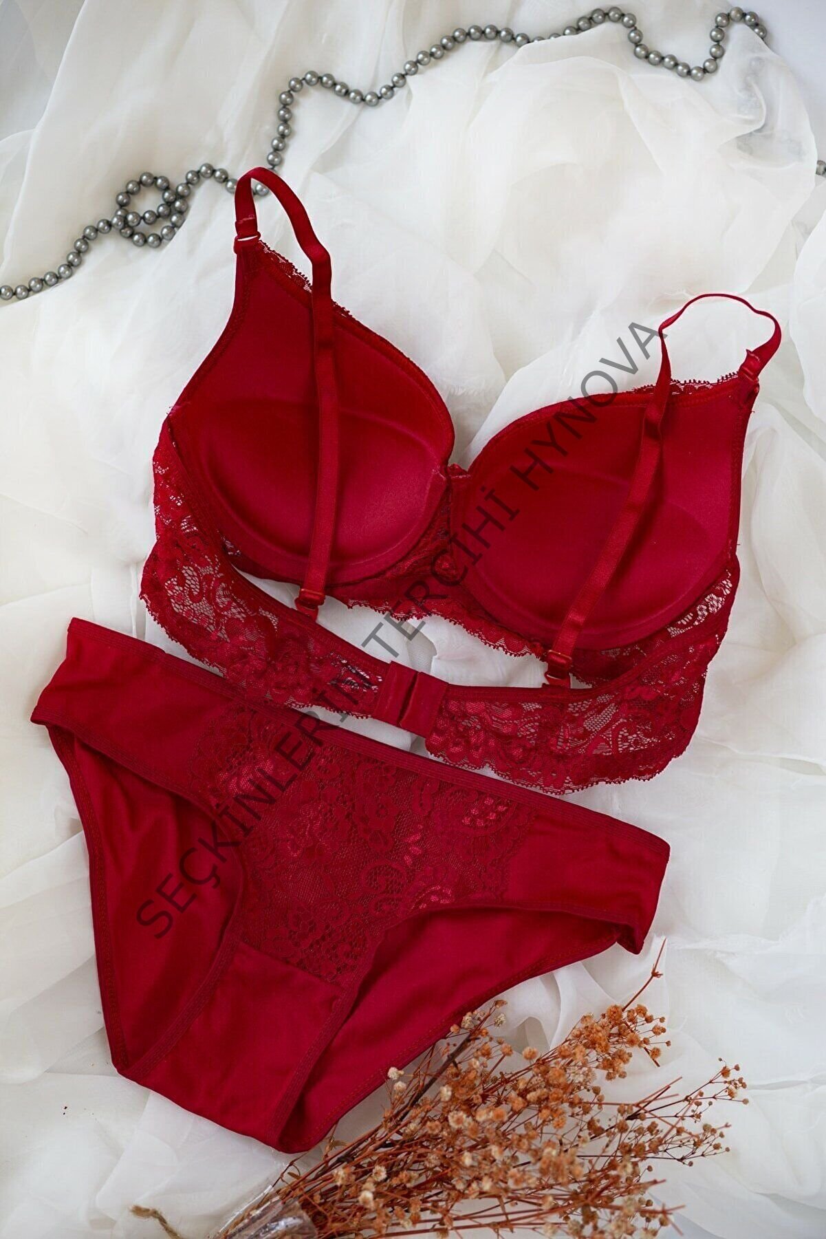 Kadın Kırmızı Dolgulu Dantel Sütyen Ve Külot Takım – Modern, Konforlu ve Günlük Kombinlere Uygun