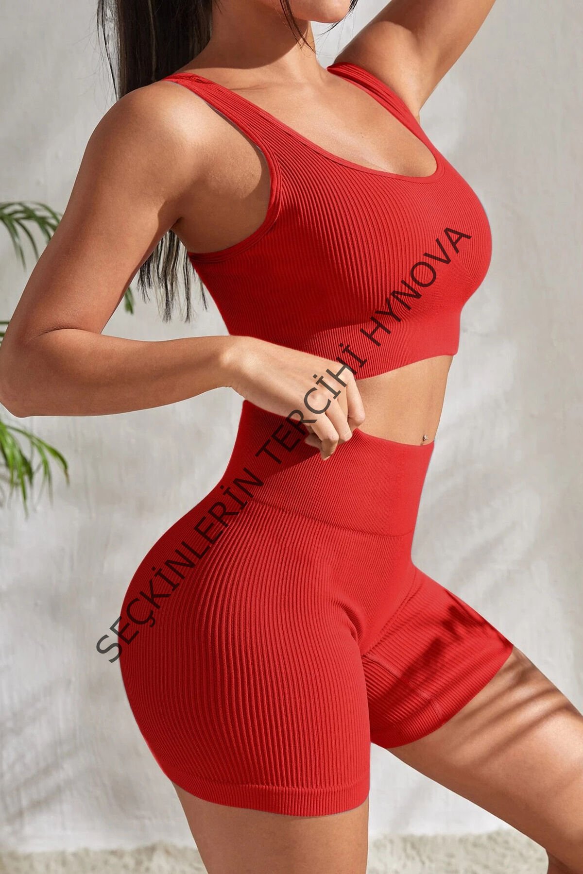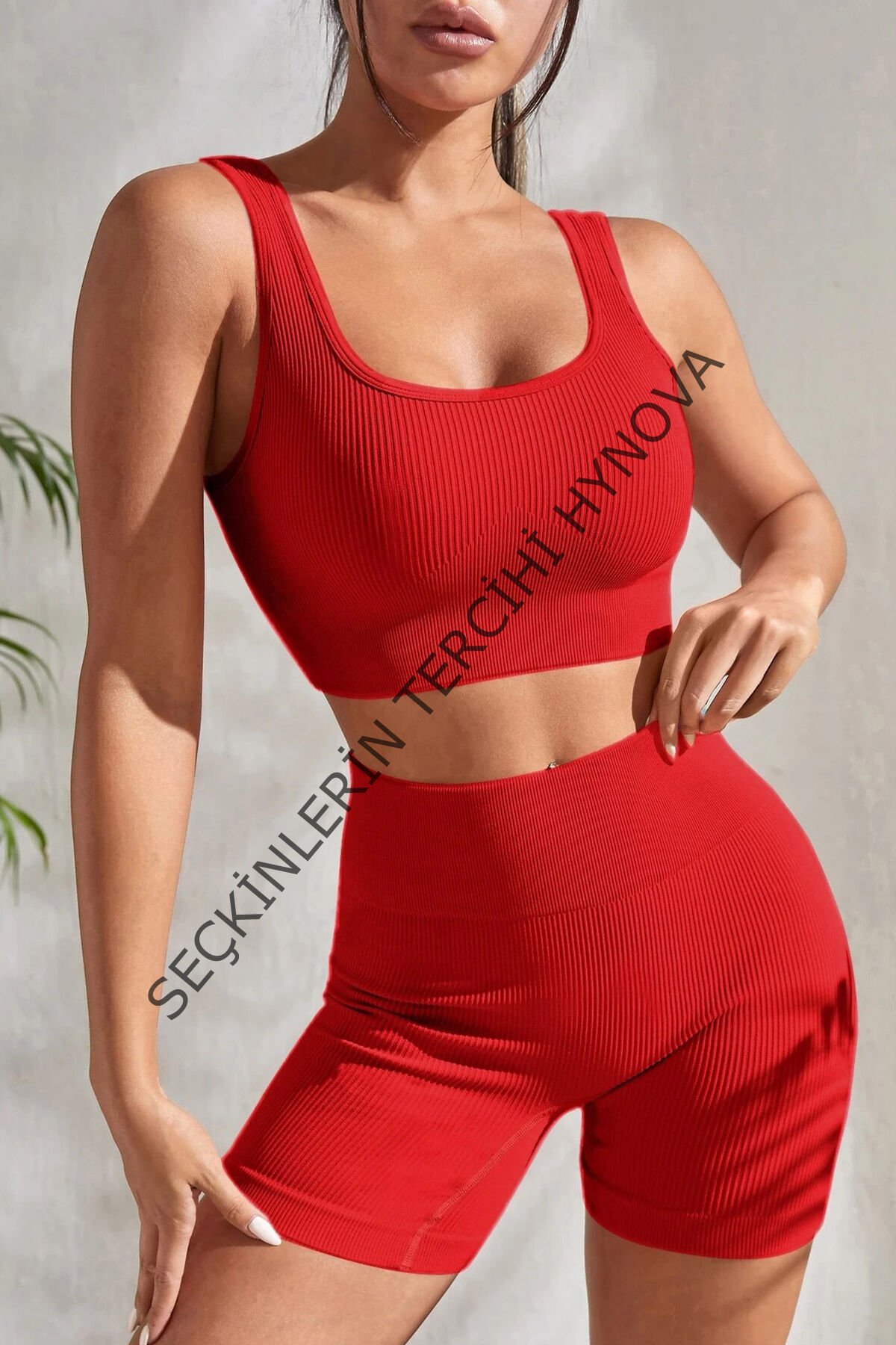 Kadın Kırmızı Şortlu Yüksek Bel Gecelik Takımı