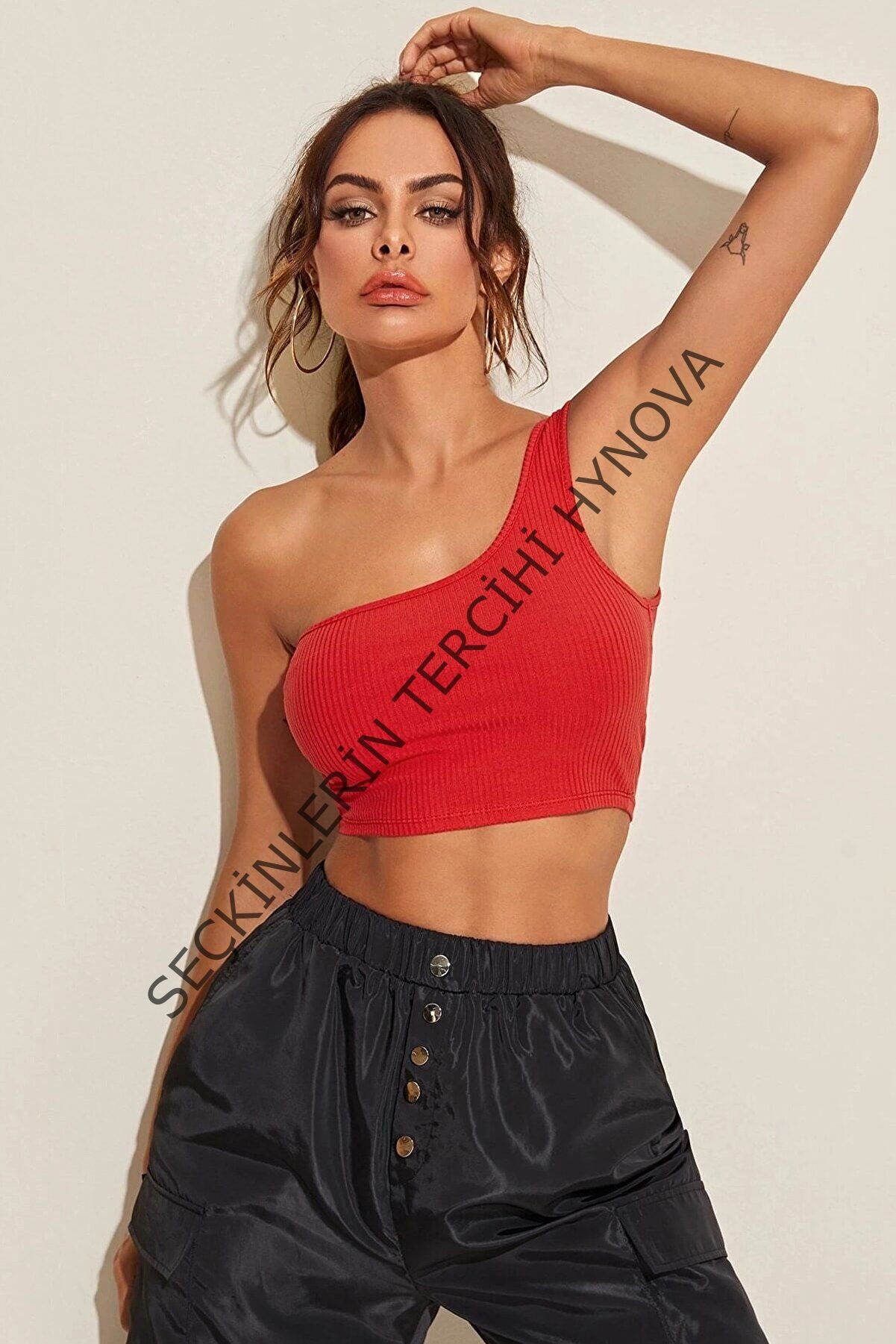 Kadın Kırmızı Tek Omuz Crop Büstiyer – Modern ve Şık Tasarım