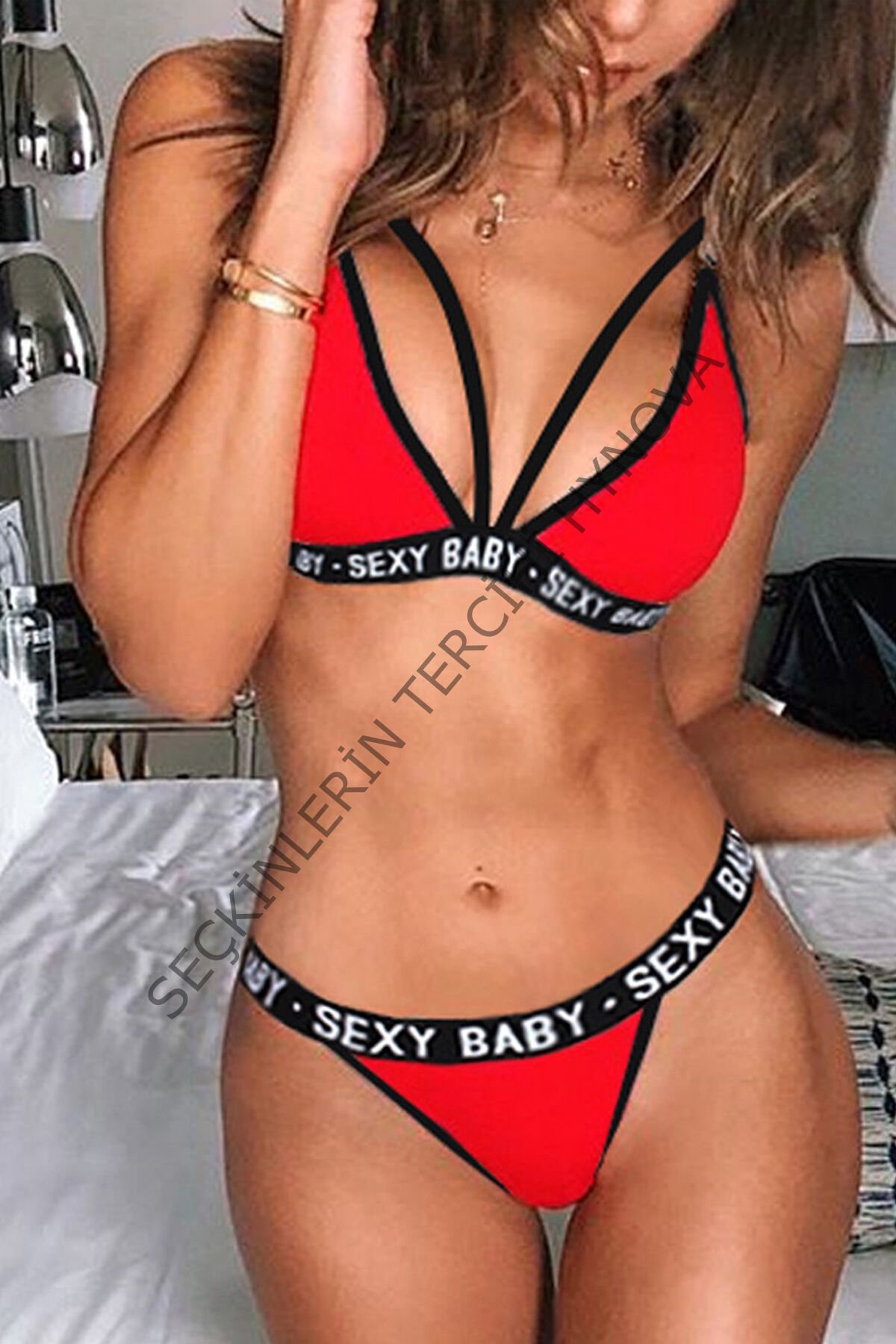 Kadın Kırmızı Yazı Detaylı Ipli Sütyen Takımı – Modern, Konforlu ve Günlük Kombinlere Uygun
