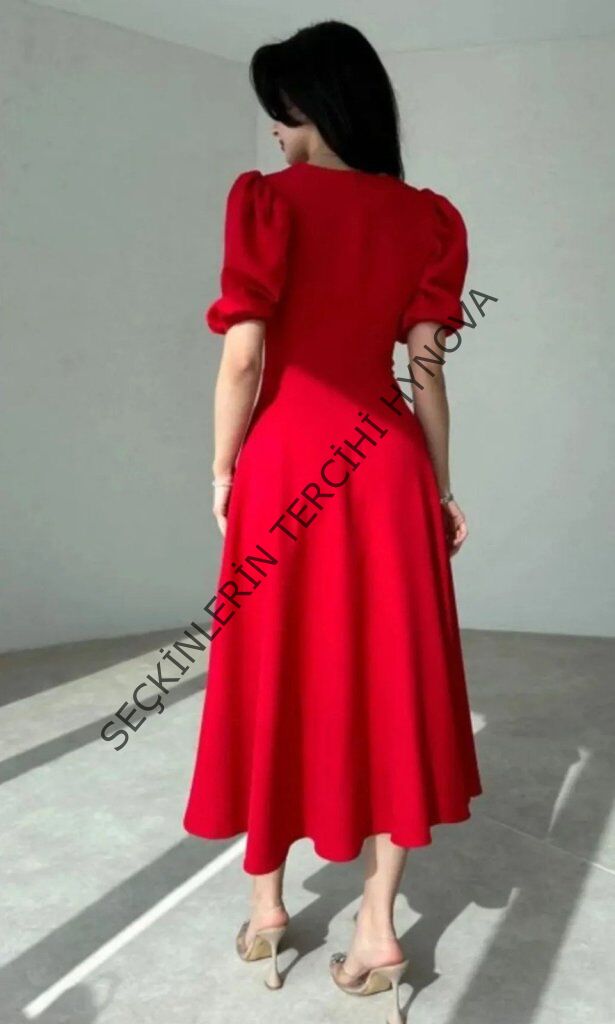 Kadın Kısa Balon Kollu Bisiklet Yaka Geniş Kesim Janjan Krep Elbise