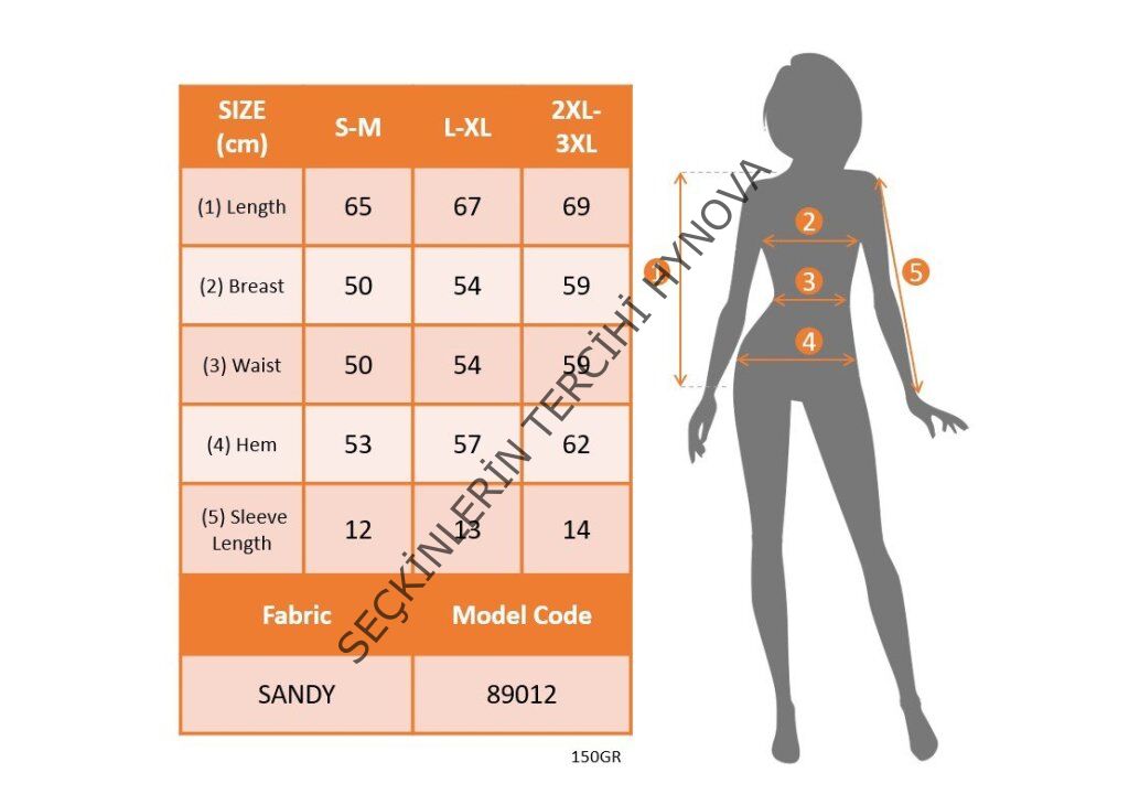 Modelin Ölçüleri: Boy:165, Kg:55, Göğüs:90, Bel:72, Kalça: 100
