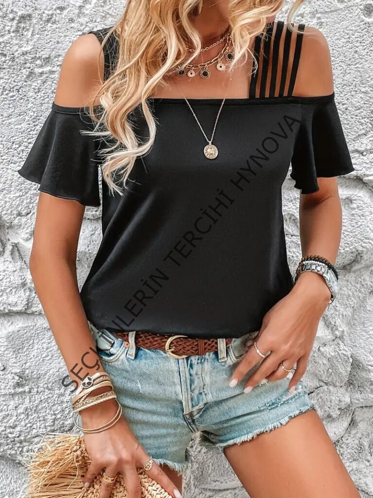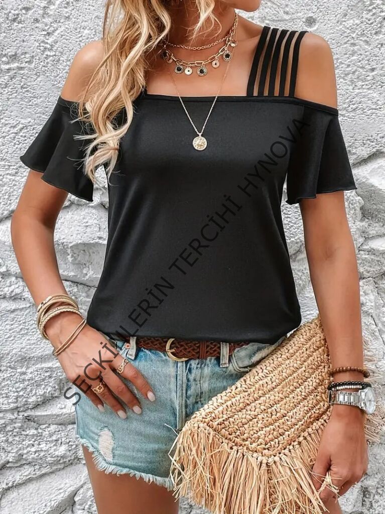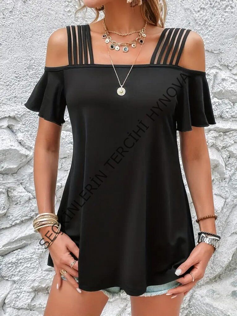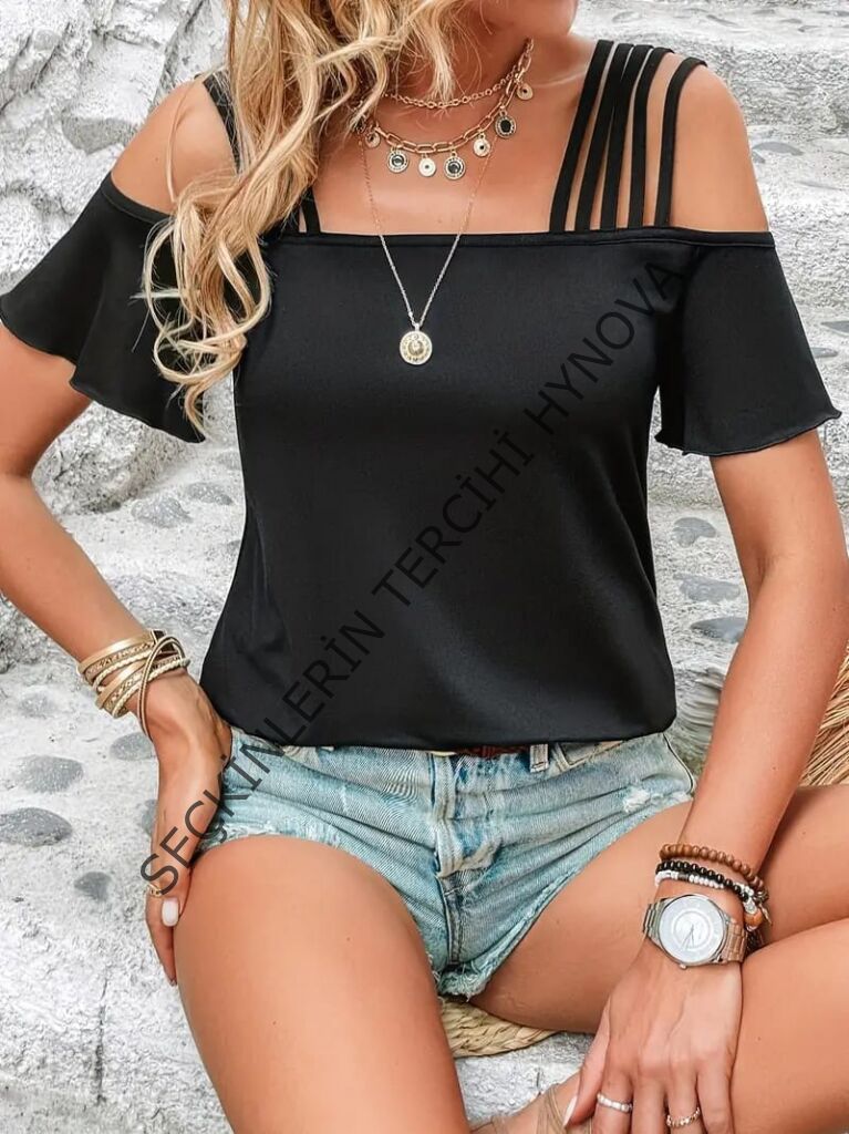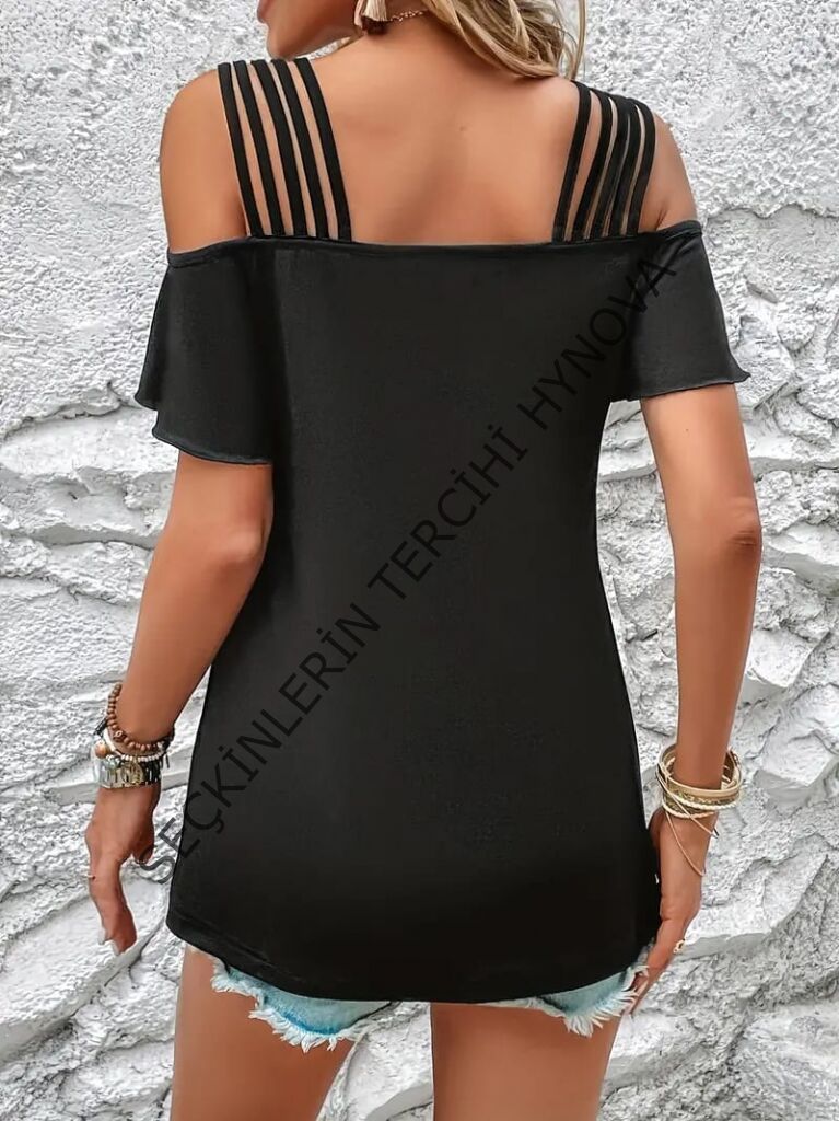 Kadın Kısa Kollu Beş Askılı Viskon Bluz