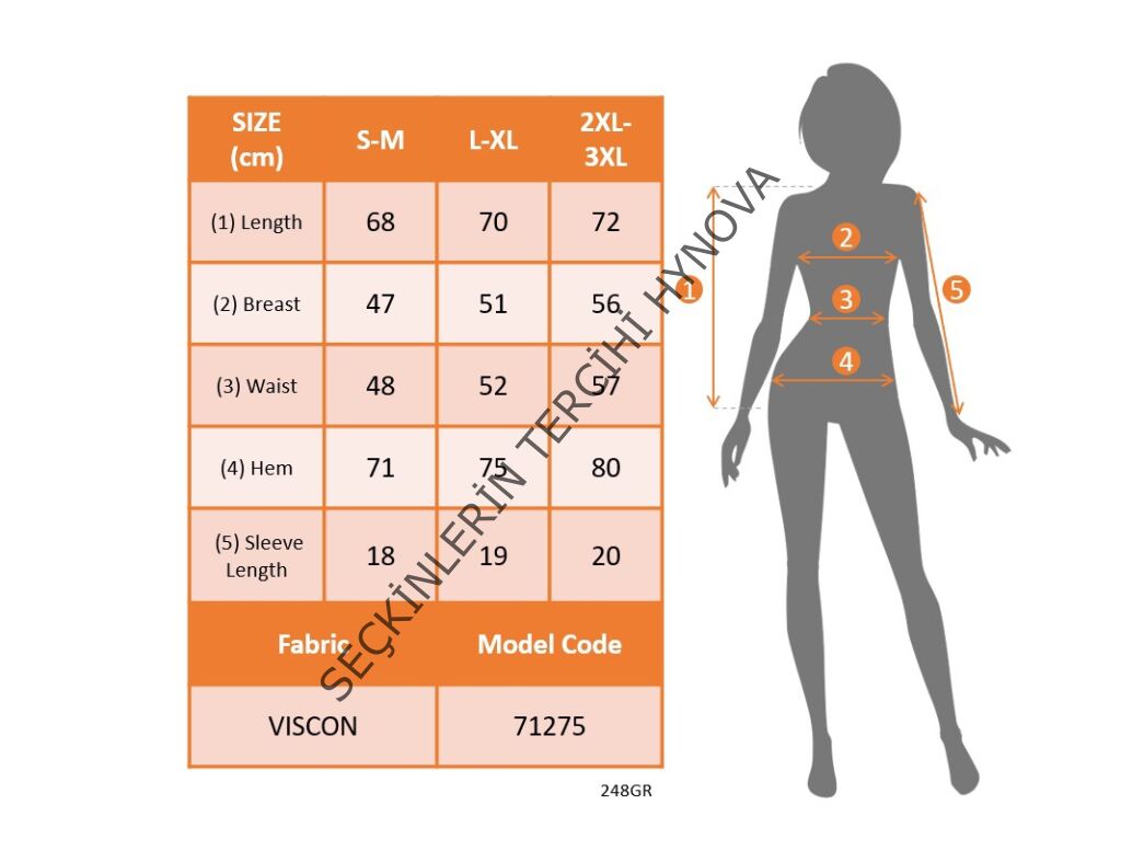 Modelin Ölçüleri: Boy:165, Kg:55, Göğüs:90, Bel:72, Kalça: 100