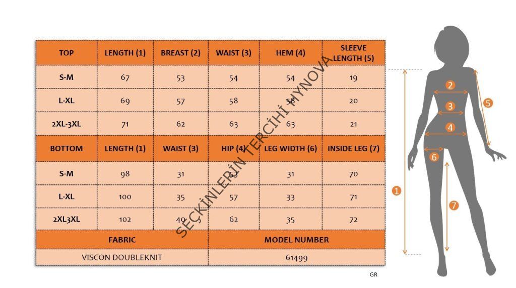 Modelin Ölçüleri: Boy:165, Kg:55, Göğüs:90, Bel:72, Kalça: 100