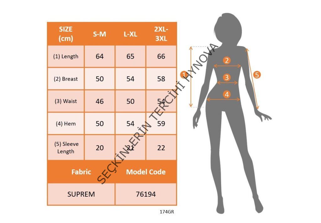 Modelin Ölçüleri: Boy:165, Kg:55, Göğüs:90, Bel:72, Kalça: 100