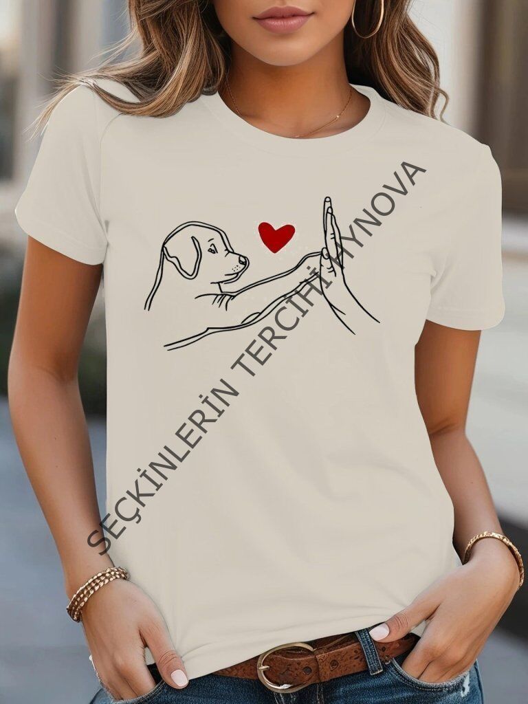 Kadın Kısa Kollu Bisiklet Yaka Köpek Baskılı Viskon Bluz