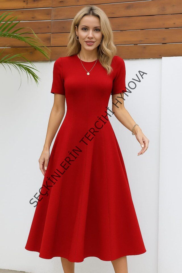 Kadın Kısa Kollu Bisiklet Yaka Maksi Boy Ithal Krep Elbise