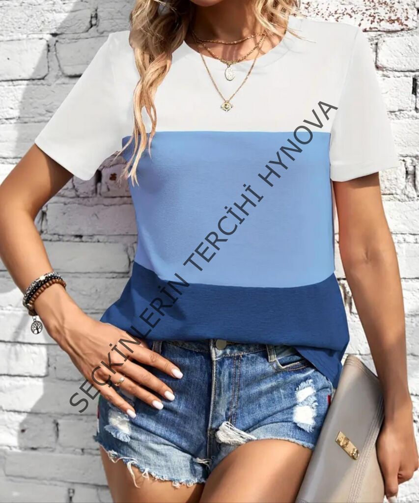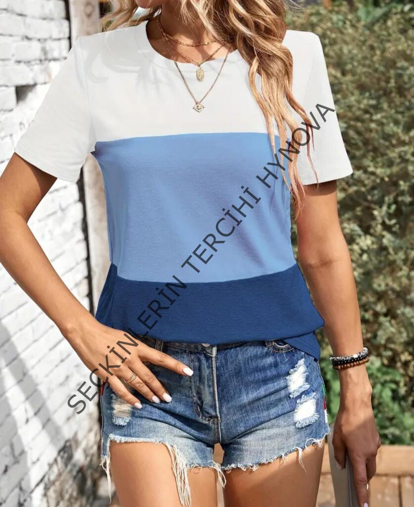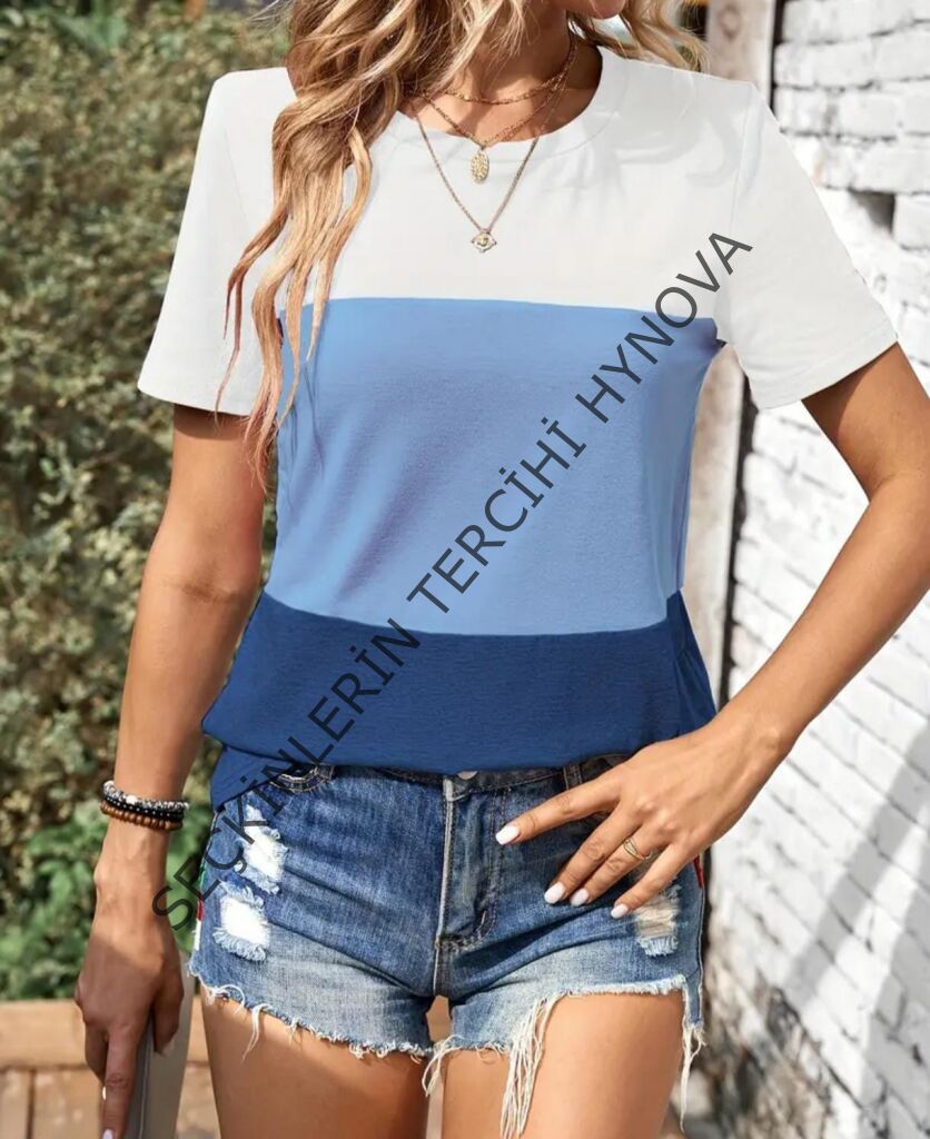 Kadın Kısa Kollu Bisiklet Yaka Salaş Viskon Bluz