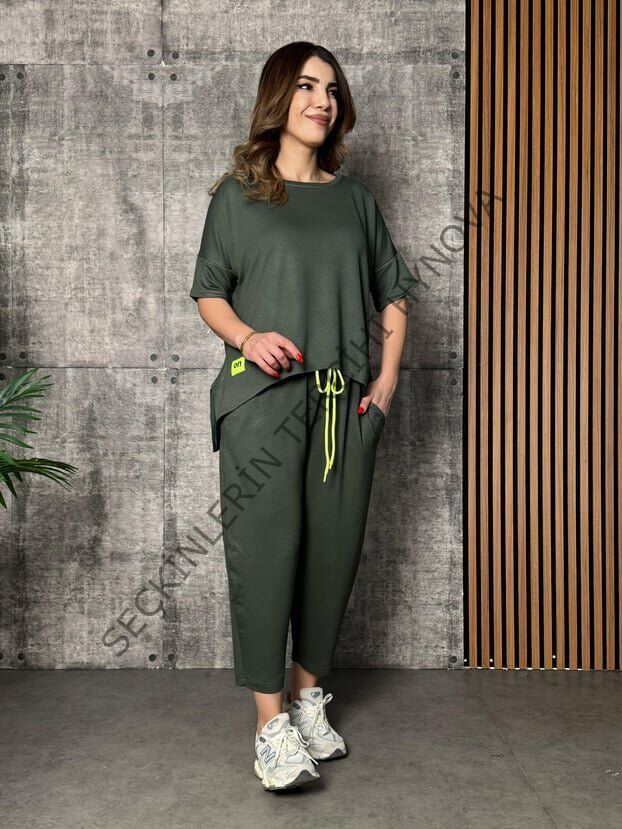 Kadın Kısa Kollu Bisiklet Yaka Viskon Iki Iplik Bluz Ve Pantolon Ikili Takım