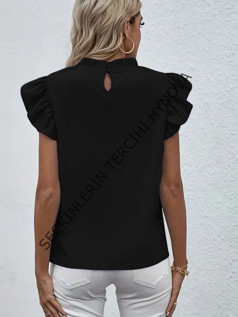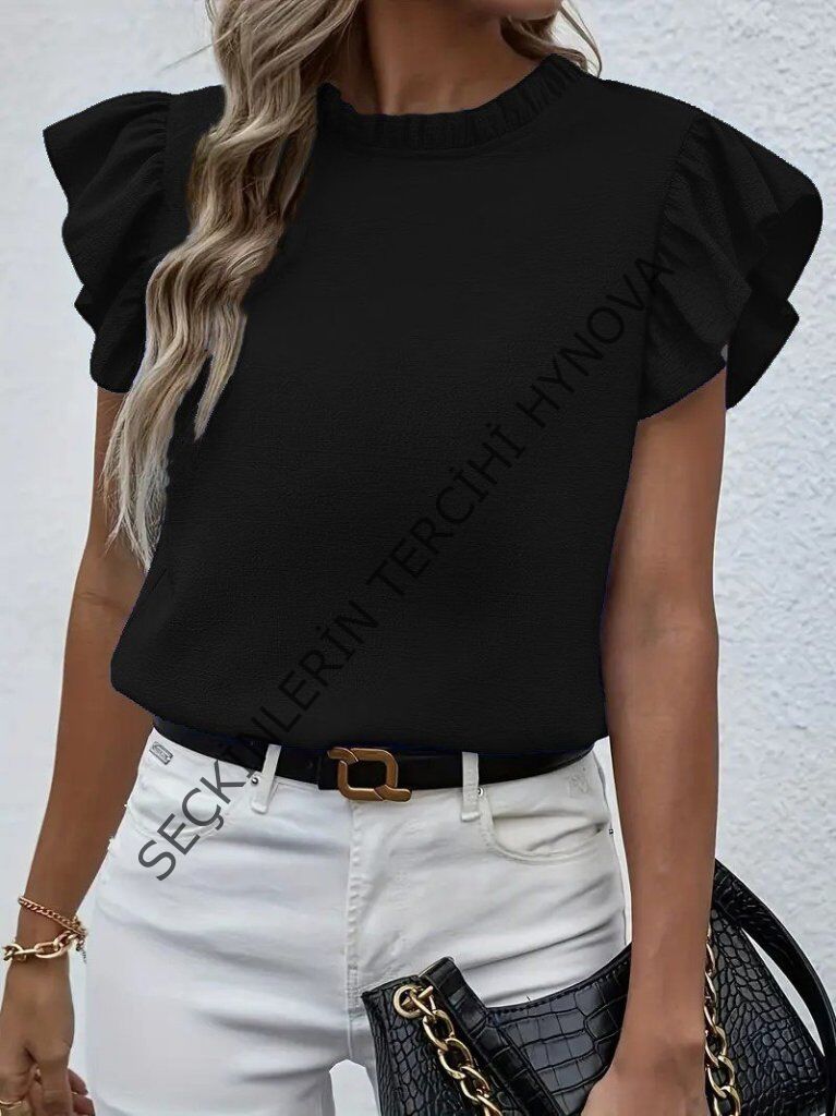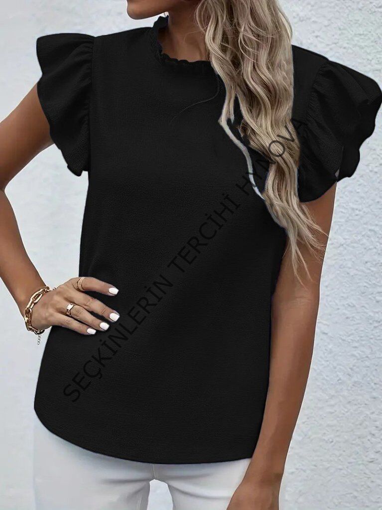 Kadın Kısa Kollu Fırfır Yakalı Bürümcük Bluz