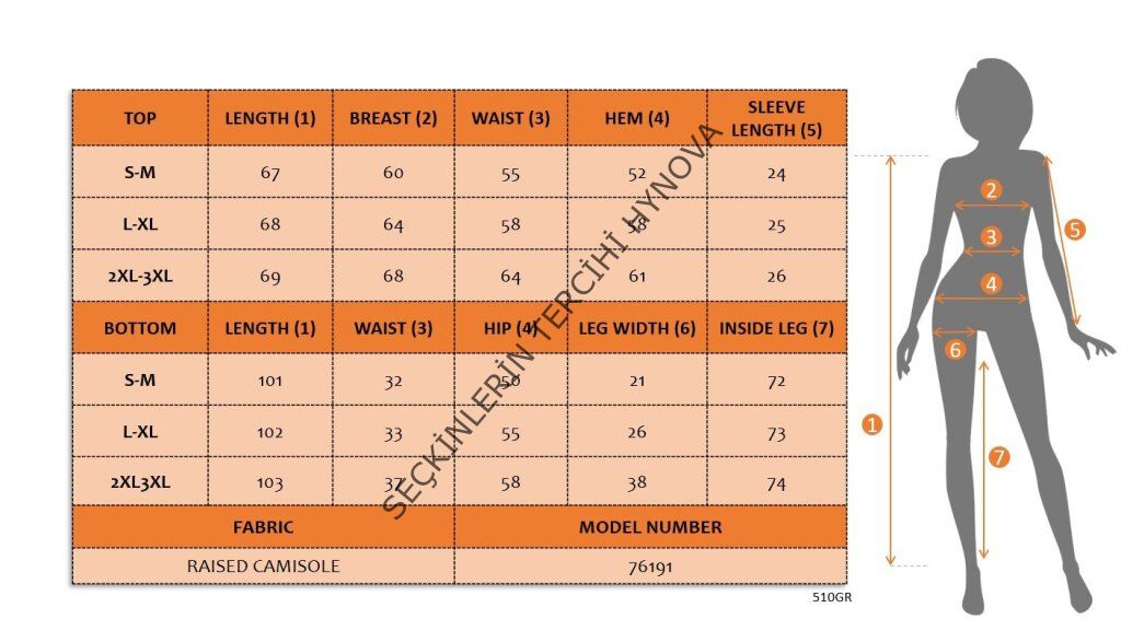 Modelin Ölçüleri: Boy:165, Kg:55, Göğüs:90, Bel:72, Kalça: 100