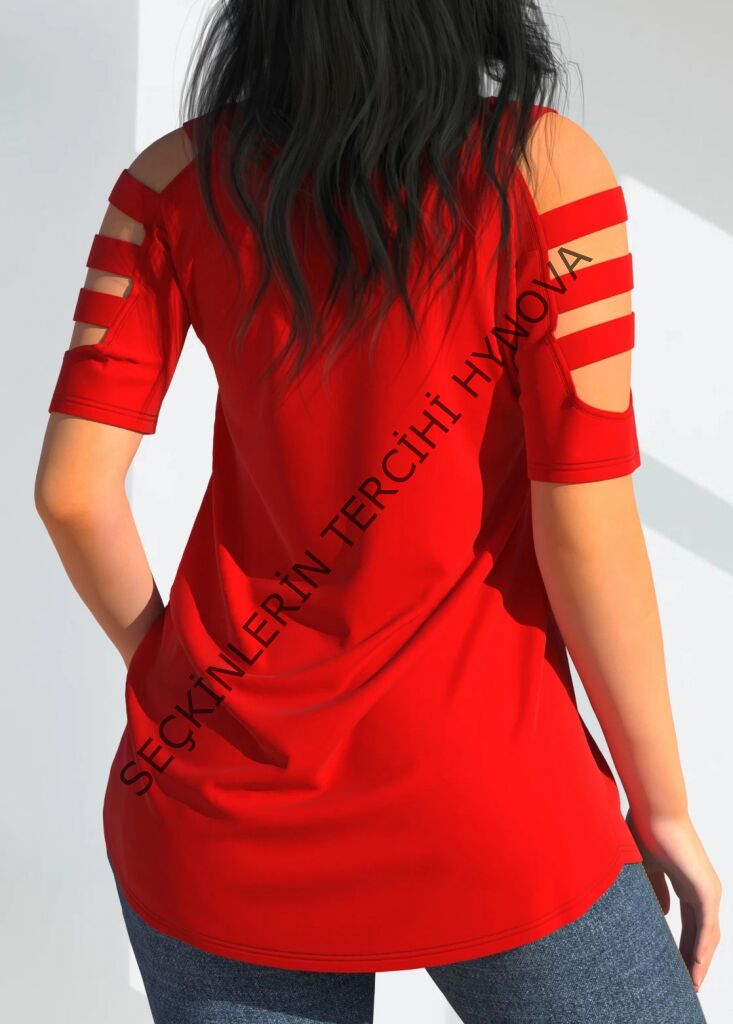 Kadın Kısa Kollu Kollar şerit Detay V Yaka Viskon Bluz