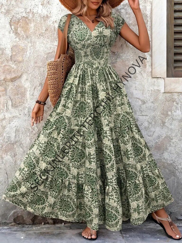 Kadın Kısa Kollu Kruvaze Yaka Beli Lastikli Süprem