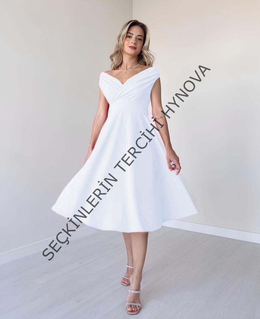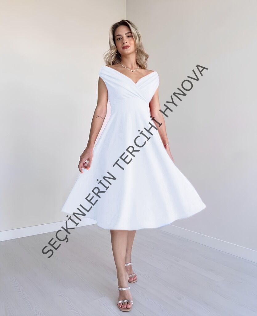 Kadın Kısa Kollu Kruvaze Yaka Eteği Volanlı Krep Elbise