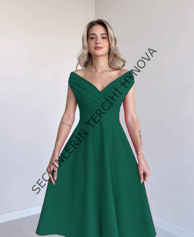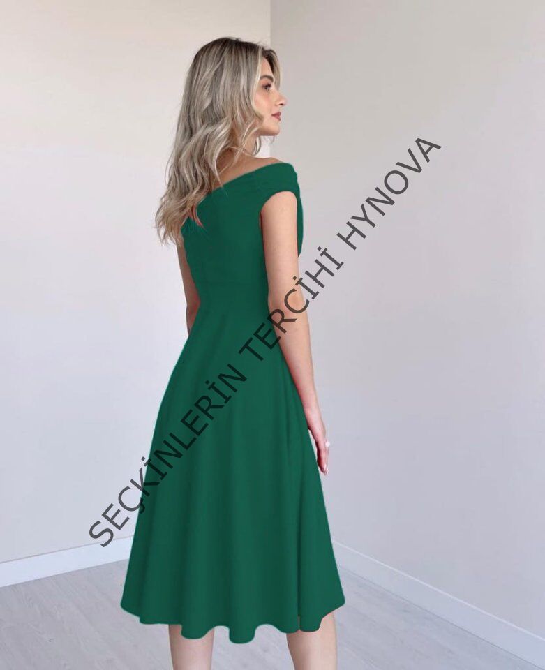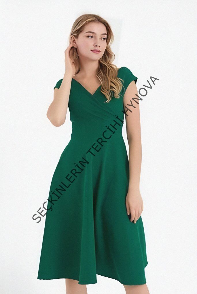 Kadın Kısa Kollu Kruvaze Yaka Eteği Volanlı Krep Elbise