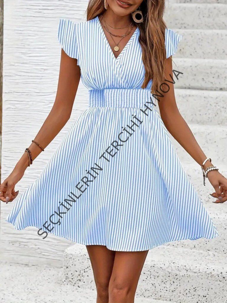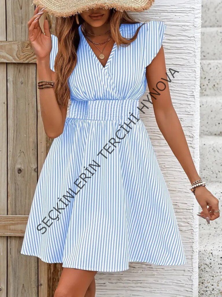 Kadın Kısa Kollu Kruvaze Yakalı Poplin Elbise