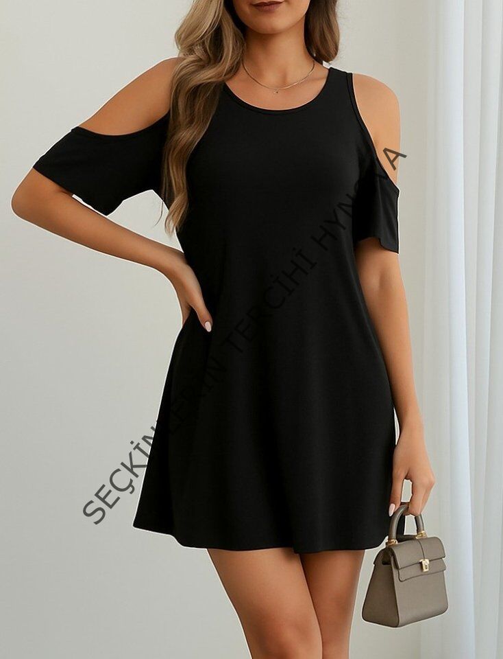 Kadın Kısa Kollu Omuz Pencere Detay Kiloş Viskon Elbise