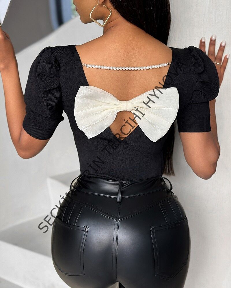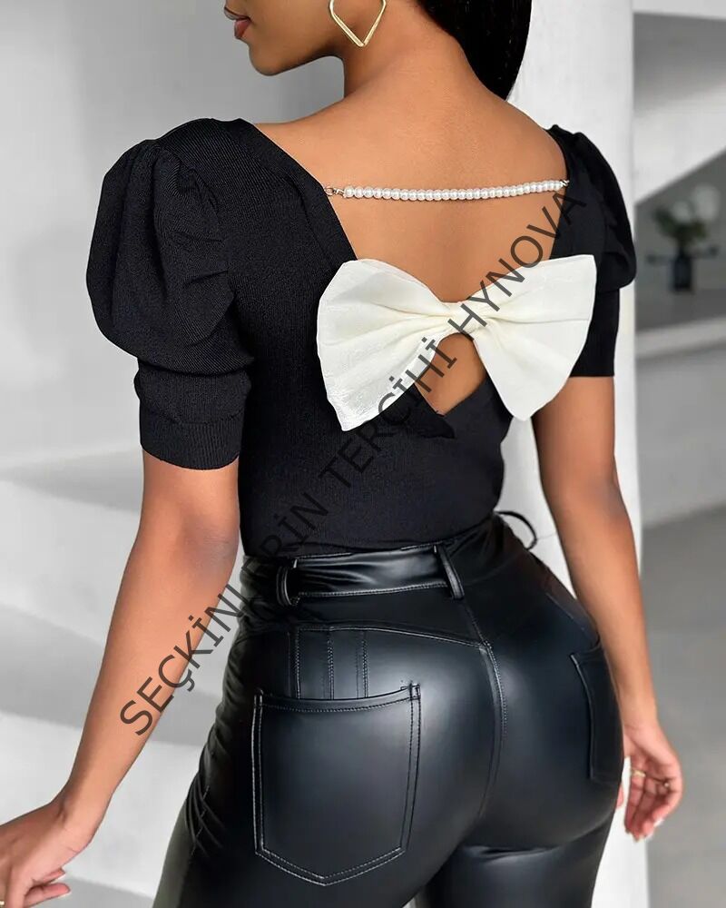 Kadın Kısa Kollu Sırt Inci Ve Kurdela Detay Karpuz Kol Yerli Krep Bluz. 109 Adet Standart Beden Gerisi 3 Beden