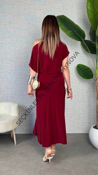 Kadın Kısa Kollu Tek Omuzdan Açık Beli Lastikli Sandy Maxi Elbise