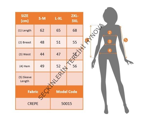 Modelin Ölçüleri: Boy:165, Kg:55, Göğüs:90, Bel:72, Kalça: 100