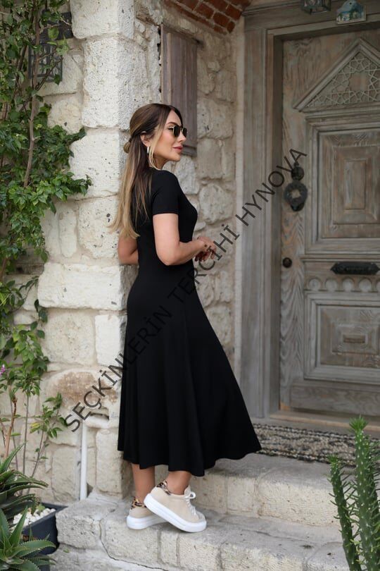 Kadın Kısa Kollu V Yaka Maxi Boy Elbise 124 Cm