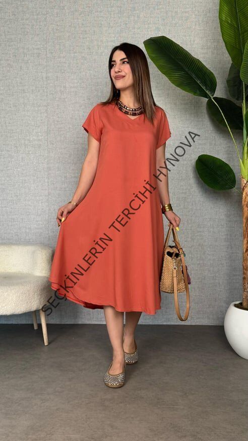 Kadın Kısa Kollu V Yaka Salaş Maxi Boy Elbise