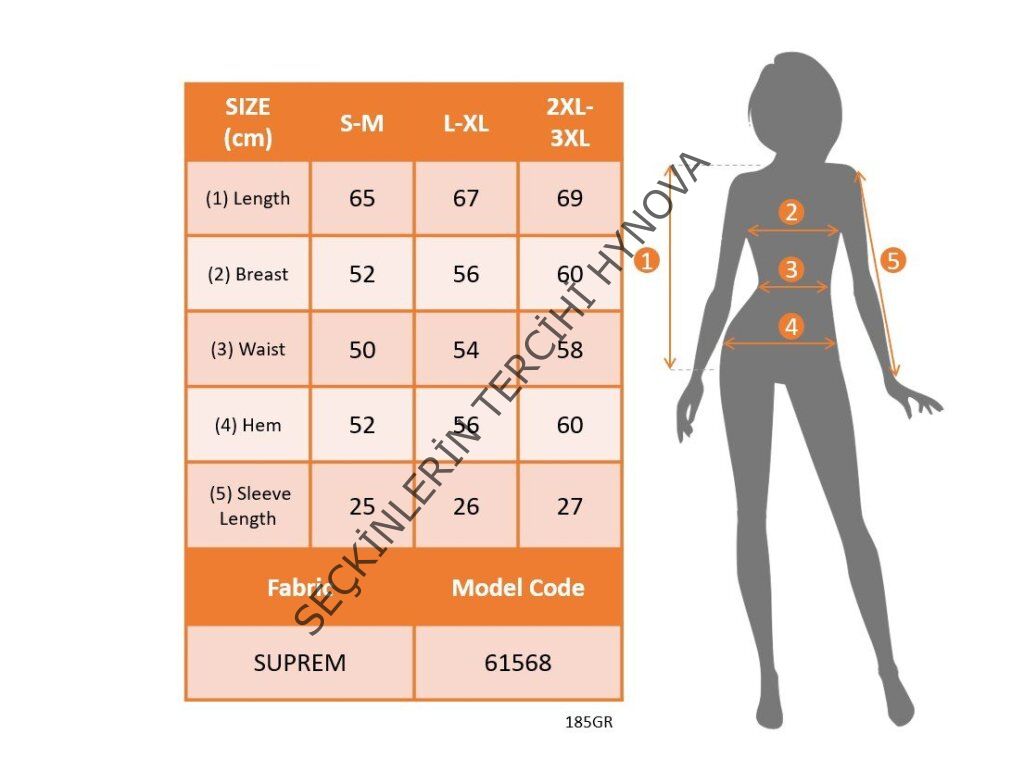 Modelin Ölçüleri: Boy:165, Kg:55, Göğüs:90, Bel:72, Kalça: 100