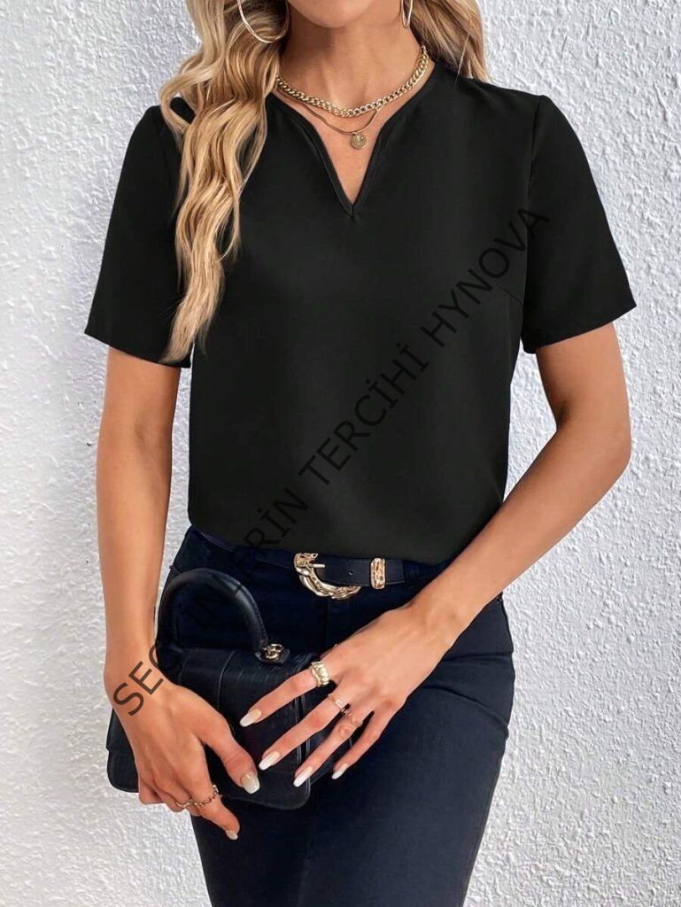 Kadın Kısa Kollu V Yakalı Ithal Krep Elbise