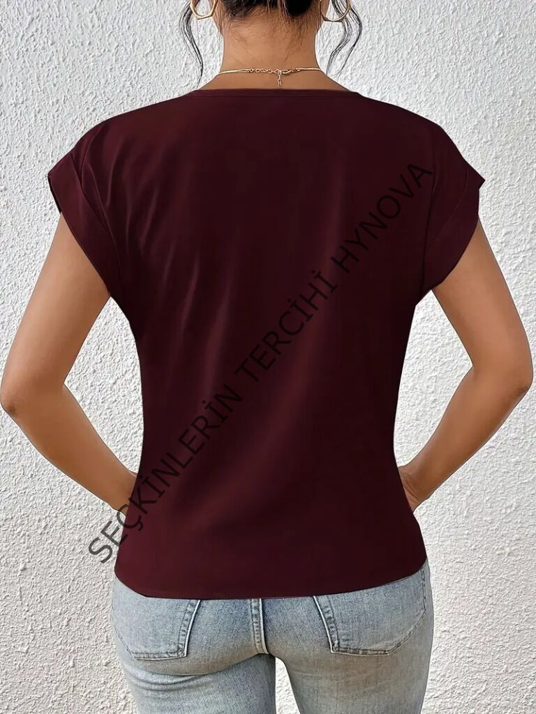 Kadın Kısa Kollu V Yakalı önden çapraz Geçmeli Detay Viskon Bluz