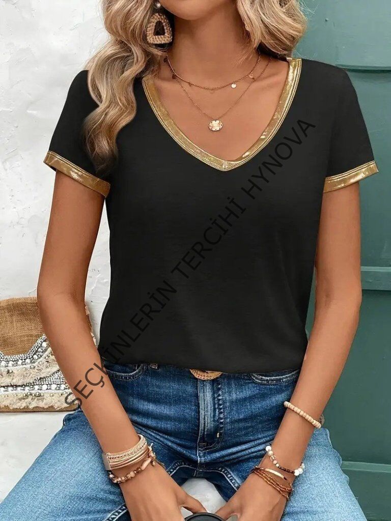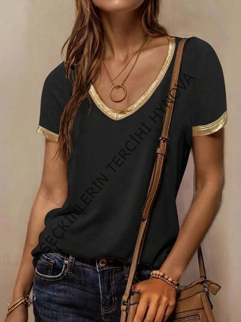 Kadın Kısa Kollu V Yakalı Viskon Bluz 161939