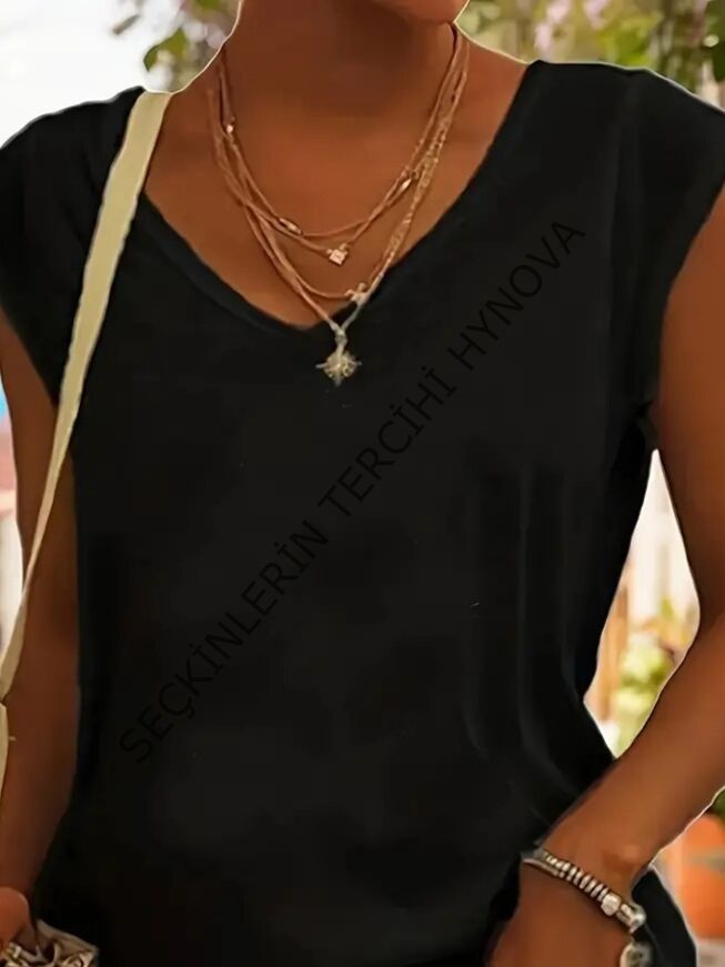 Kadın Kısa Kollu V Yakalı Viskon Bluz