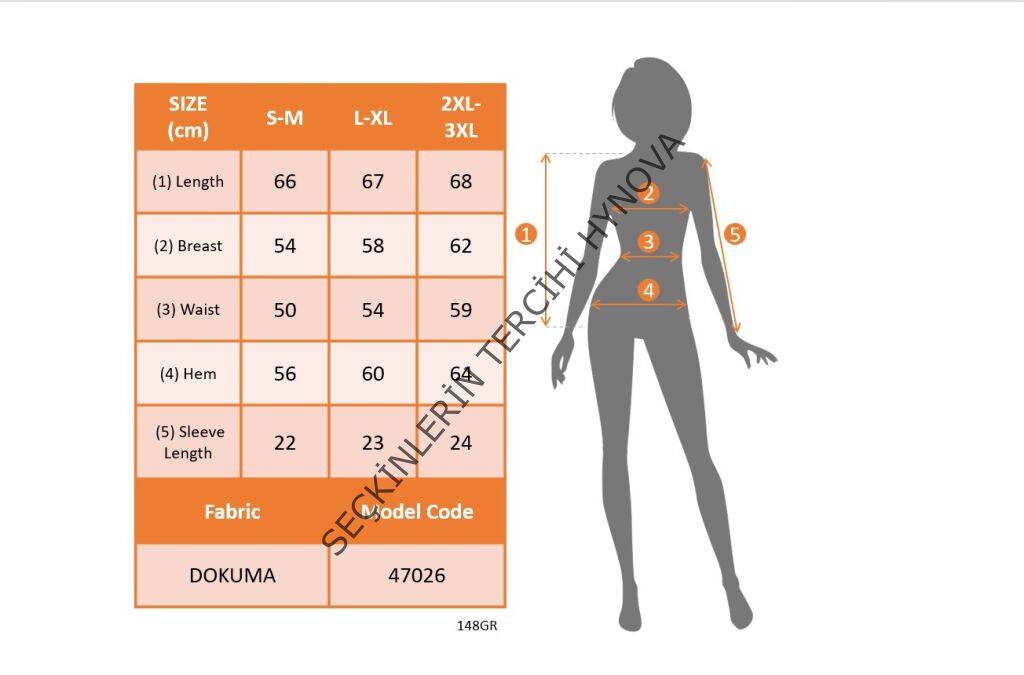 Modelin Ölçüleri: Boy:165, Kg:55, Göğüs:90, Bel:72, Kalça: 100