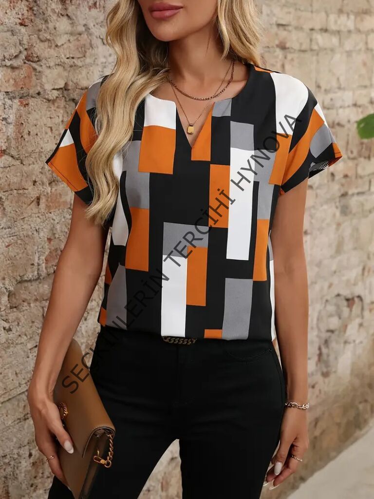 Kadın Kısa Kollu V Yakalı Yarasa Kollu Atlas Bluz