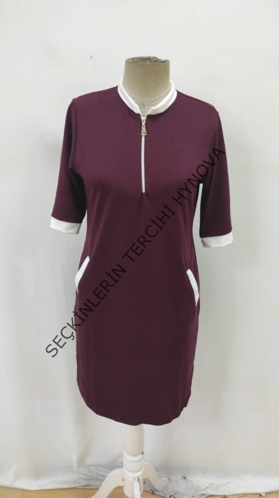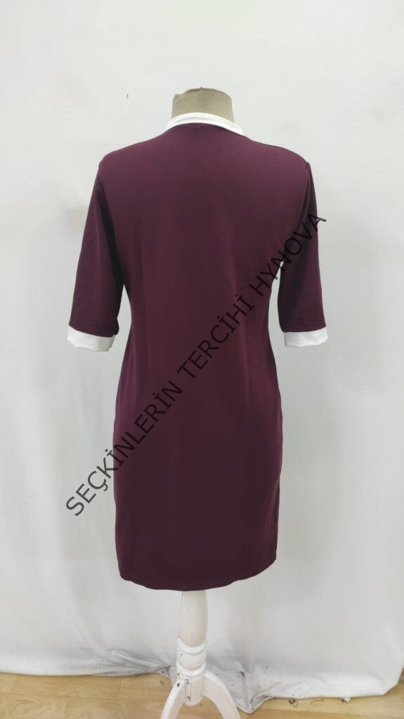 Kadın Kısa Kollu Yakadan Fermuarlı Cepli Yandan Yırtmaçlı Viskon Elbise