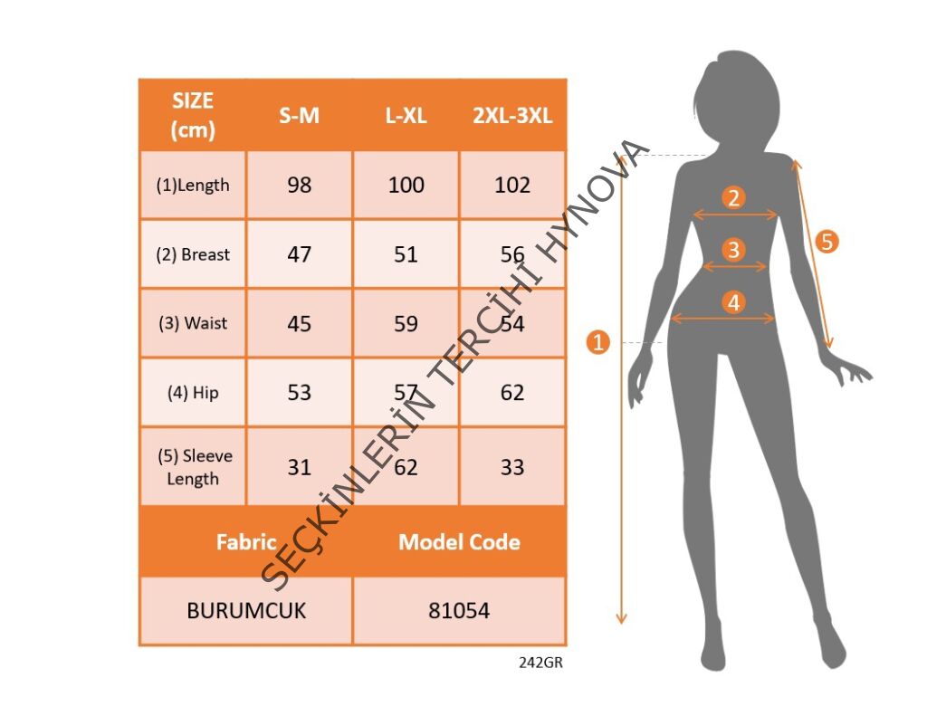 Modelin Ölçüleri: Boy:165, Kg:55, Göğüs:90, Bel:72, Kalça: 100