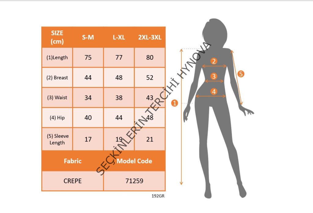 Modelin Ölçüleri: Boy:165, Kg:55, Göğüs:90, Bel:72, Kalça: 100