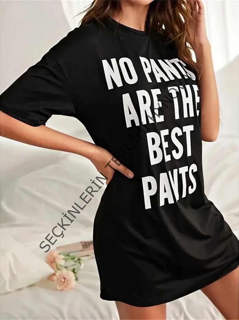 Kadın Kısa Kollu Yazı Baskılı Basic Mini Elbise