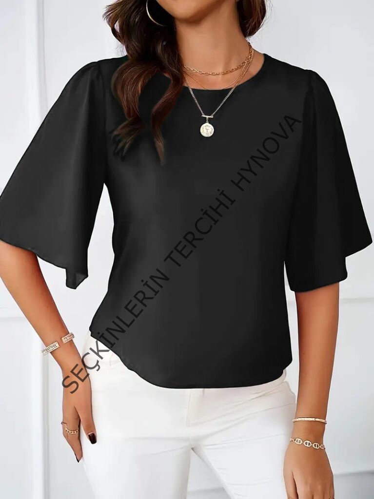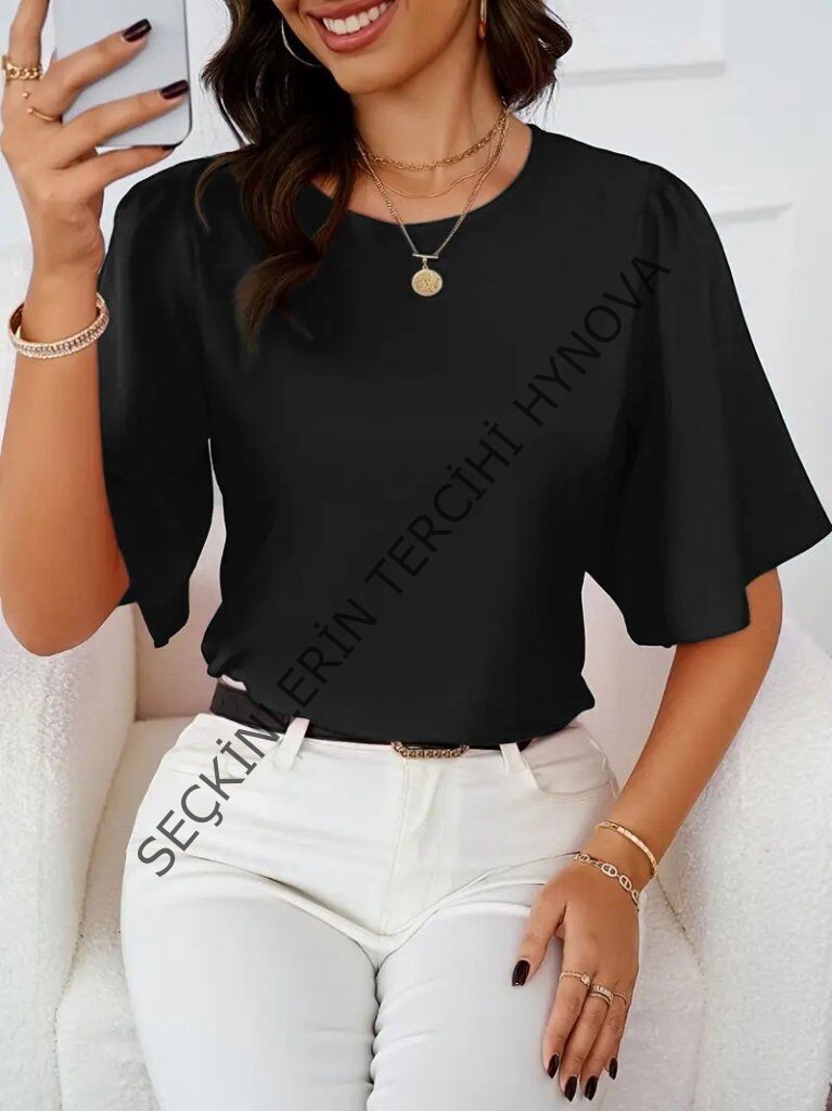 Kadın Kısa Kollu Yuvarlak Yaka Sandy Bluz