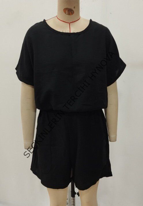 Kadın Kısa Kollu Yuvarlak Yakalı Ithal Keten Bluz Ve Short Ikili Takım