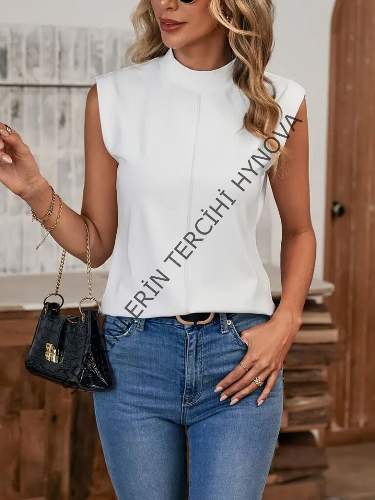 Kadın Kısa Reglan Kollu Yarı Balıkçı Yaka Ithal Krep Bluz