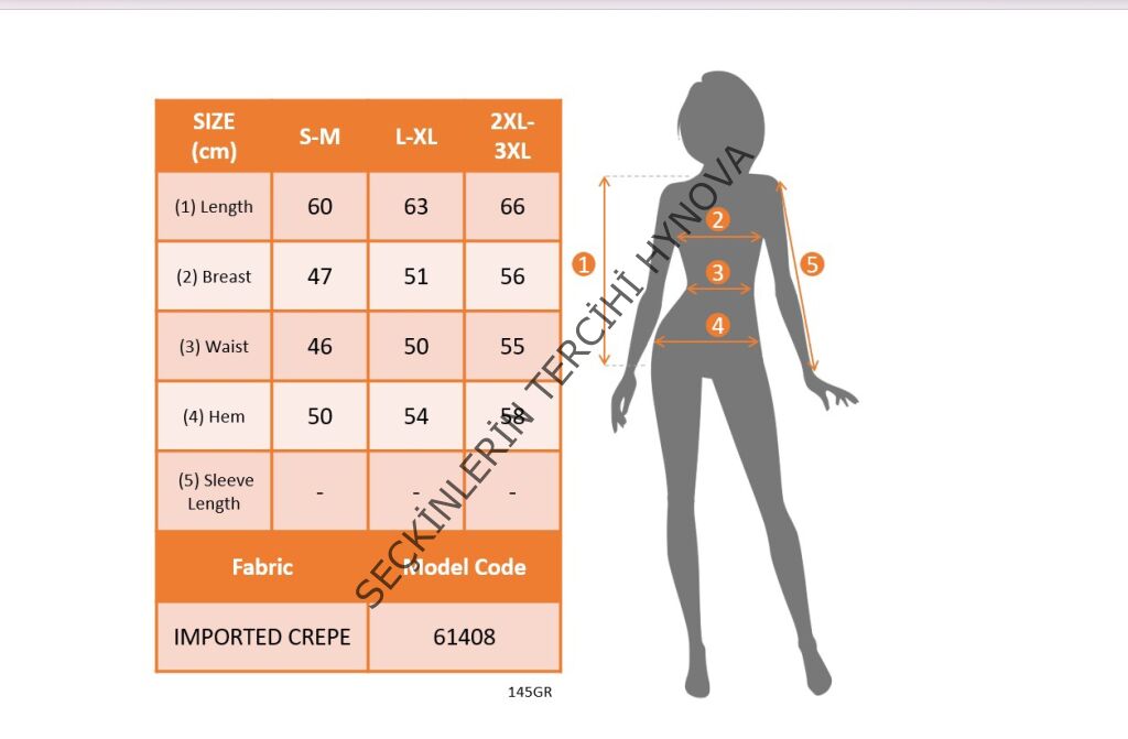Modelin Ölçüleri: Boy:165, Kg:55, Göğüs:90, Bel:72, Kalça: 100