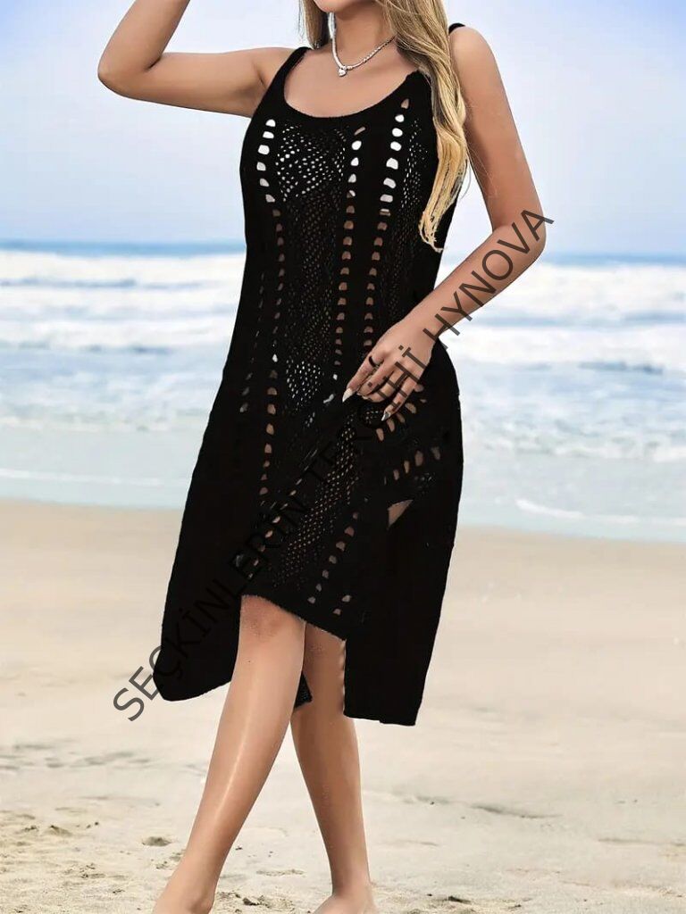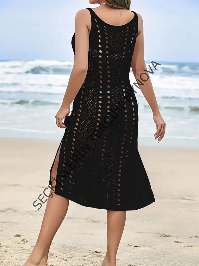 Kadın Kolsuz Askılı Yan Yırtmaç Detay Triko Midi Boy Elbise