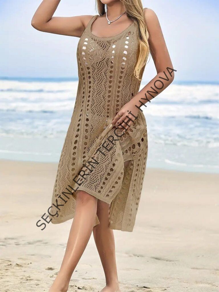 Kadın Kolsuz Askılı Yan Yırtmaç Detay Triko Midi Boy Elbise