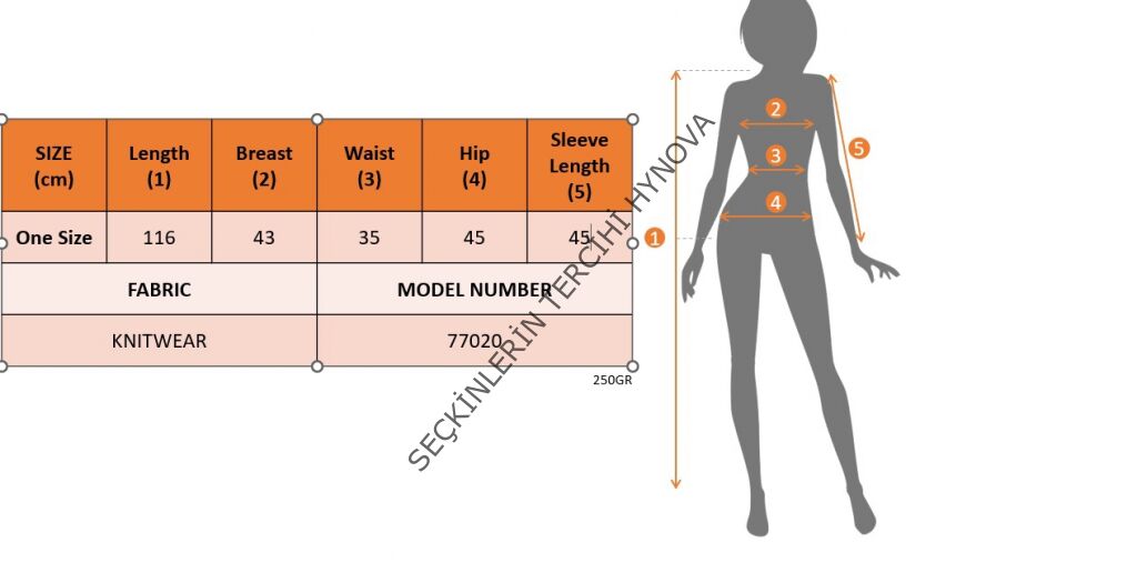 Modelin Ölçüleri: Boy:165, Kg:55, Göğüs:90, Bel:72, Kalça: 100