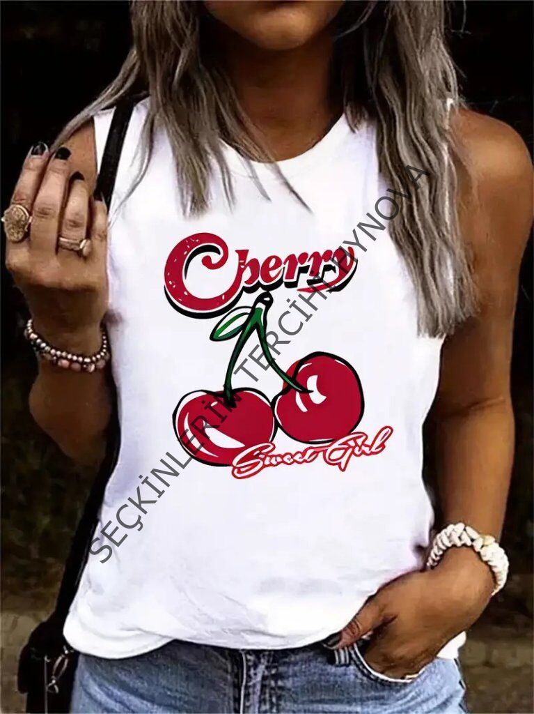Kadın Kolsuz Bisiklet Yaka Desenli Viskon Bluz