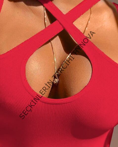 Kadın Kolsuz Boyundan çapraz Geçirmeli Göğüs Damla Detay Kaşkorse Bluz