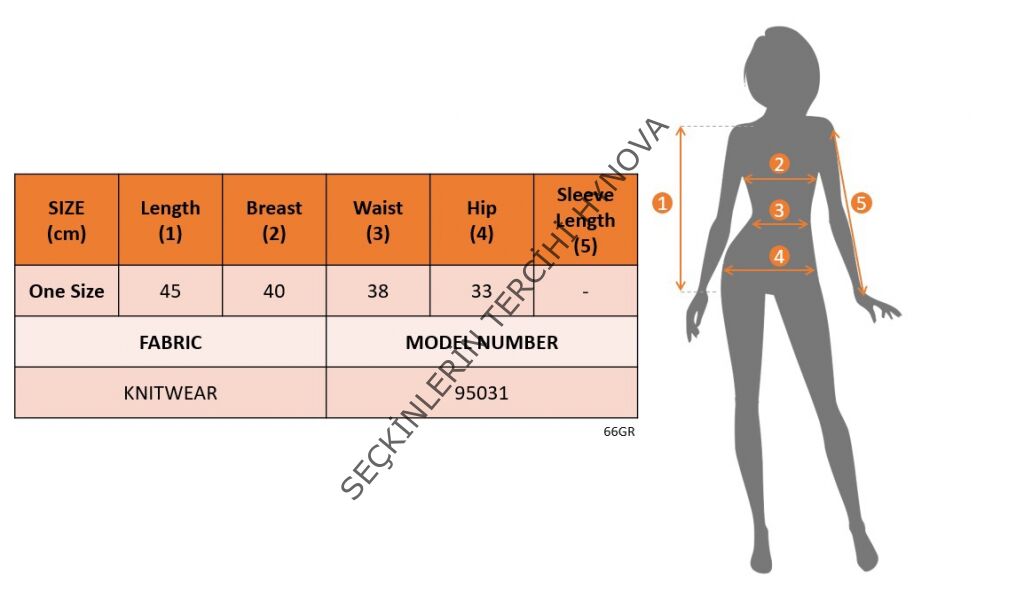 Modelin Ölçüleri: Boy:165, Kg:55, Göğüs:90, Bel:72, Kalça: 100